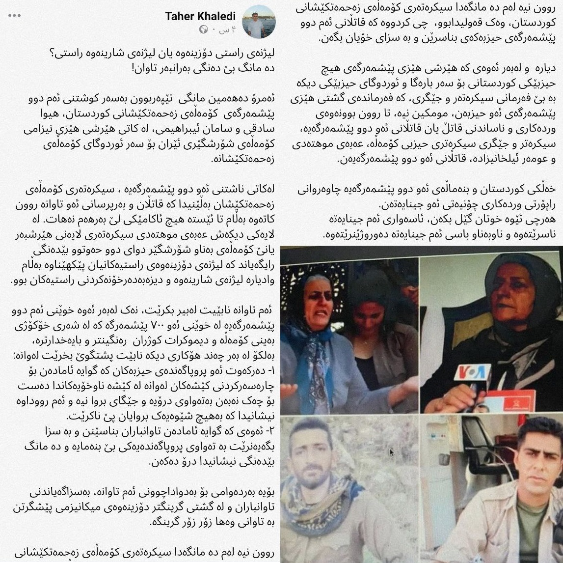 مردم کردستان و خانواده این دو پیشمرگ، در انتظار گزارش جزییات این جنایت هستند و هر چه شما خودتان را به آن راه بزنید، نتیجه این جنایت پاک نمی شود.