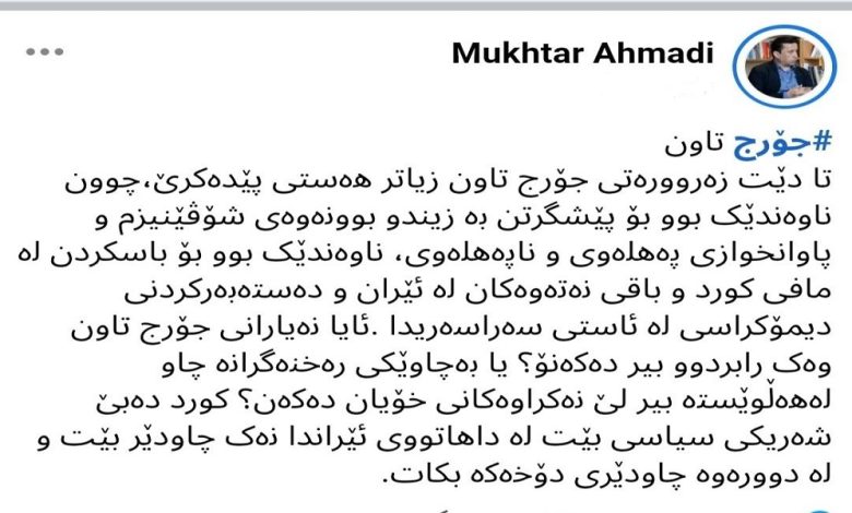 حمایت عجیب مختار احمدی عضو کمیته رهبری گروهک تروریستی کومله از سمینار جورج تاون با وجود اعتراضات گسترده پیشمرگان کومله به حضور عبدالله مهتدی در جورج تاون!
