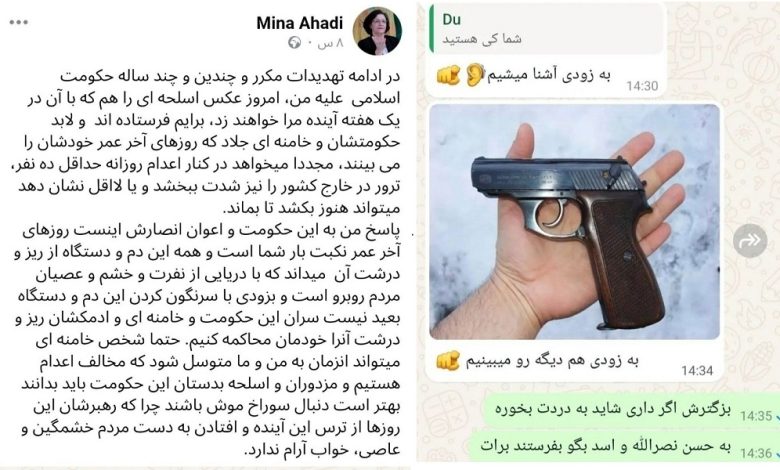 احدی ادعا کرده، مردی عکسی از اسلحه را برایش ارسال نموده و او را تهدید کرده است!