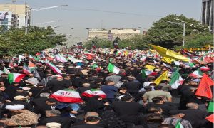 حضور پرشور ملت ایران از ساعتی قبل در مراسم تشییع شهدا از اولین ساعات صبح، میدان انقلاب اسلامی شاهد سیل جمعیتی است که با شور حسینی(ع)، پرچم‌های سرخ «لبیک یاحسین(ع)» در دست و دست‌نوشته‌هایی با شعارهای ضدصهیونیستی و ضدآمریکایی، در صحنه حاضر شده‌اند.
