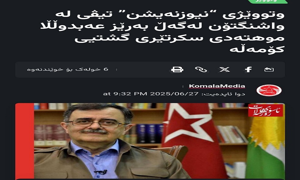 ابراز خوشحالی و قدردانی عبدالله مهتدی از آمریکا و رژیم صهیونیستی بخاطر حمله به ایران و کشتار زنان و کودکان ایرانی