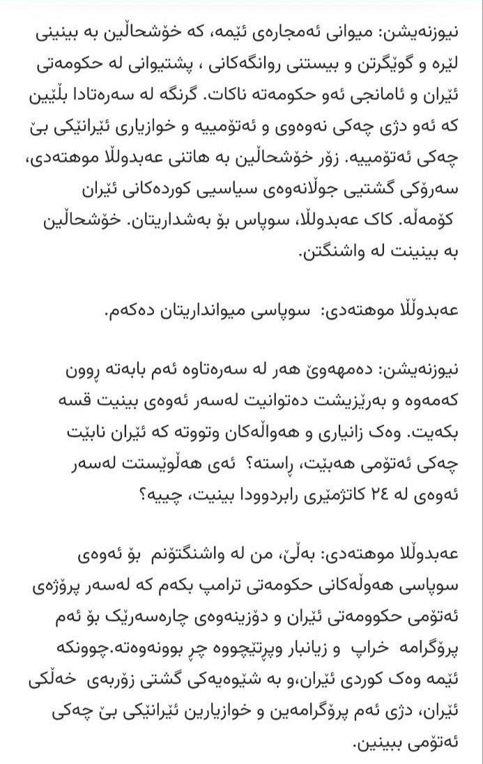 عبدالله مهتدی در این گفت و گو بدون کوچکترین اشاره به کشته شدن شهروندان کشورمان، از حملات اخیر به ایران قدردانی کرد!