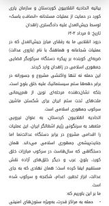 درود انقلابی ما به رفقای مبارز جیشالعدل که در عملیات شجاعانه و هماهنگ با نام (بازوی عدالت) ضربهای کوبنده بر پیکره دستگاه سرکوبگر قضایی جمهوری اسلامی در زاهدان وارد کردند.