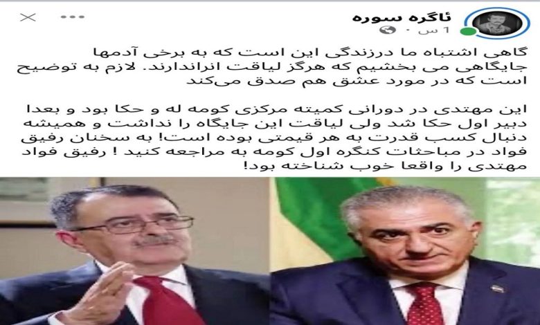 به سخنان کاک فواد در مباحثات کنگره اول گوش کنید رفیق فواد عبدالله مهتدی را خوب شناخته بود.