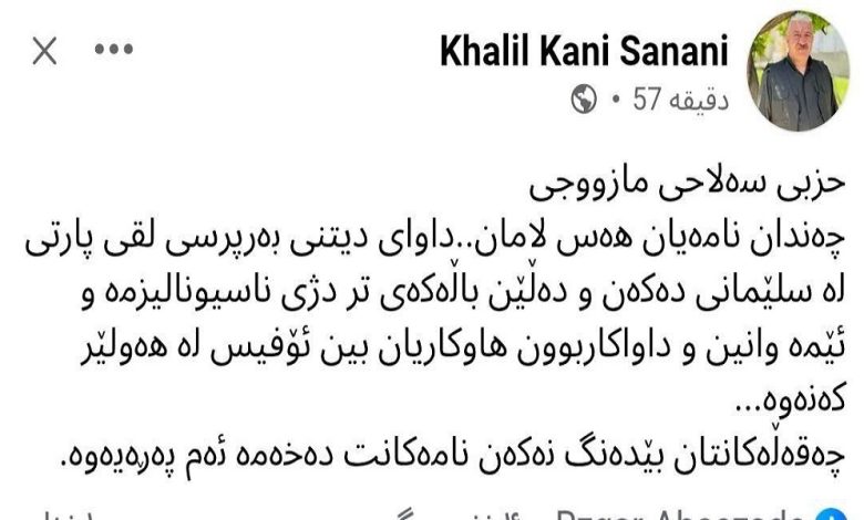 چندین نامه پیش ما دارند که در آنها، تقاضای ملاقات با مسئول شاخه پارتی در سلیمانیه را کرده بودید.