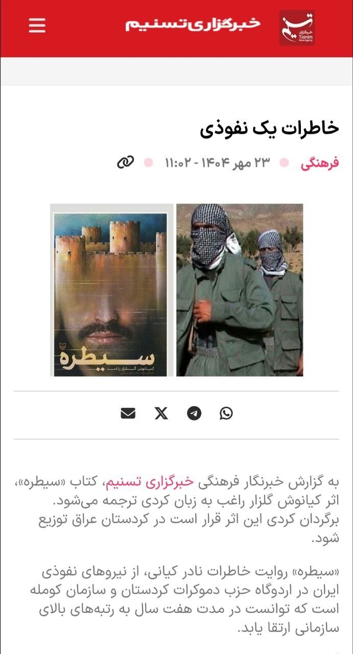 خاطرات نفوذ نادر کیانی به گروهک تروریستی کومله به زبان کُردی ترجمه و در کردستان عراق هم توزیع می شود
