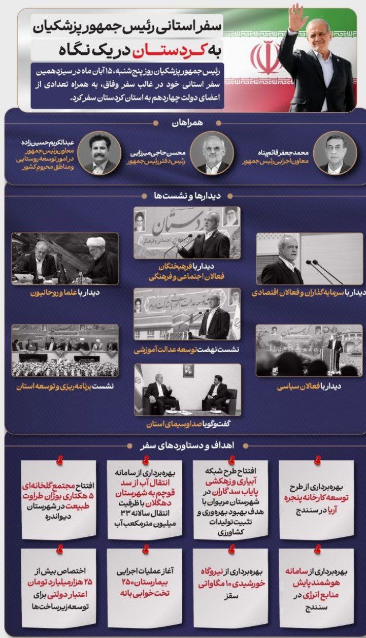 سفر استانی دکتر مسعود پزشکیان به کردستان در یک نگاه/ توسعه کردستان/ بهره برداری از چندین پروژه مهم سرمایه گذاری