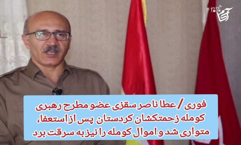 فوری/ عطا ناصر سقزی عضو مطرح رهبری کومله زحمتکشان کردستان پس از استعفا، متواری شد و اموال کومله را نیز به سرقت برد