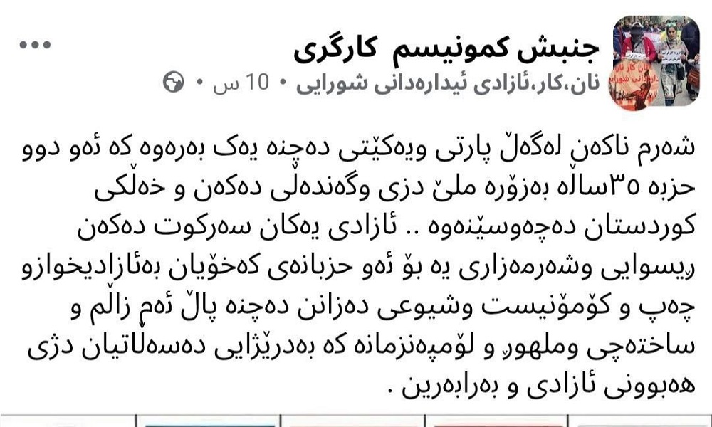 حمله تند پیج منتسب به جریانات چپ و کمونیست به گروهک کومله زحمتکشان کردستان و حزب دمکرات کردستان ایران