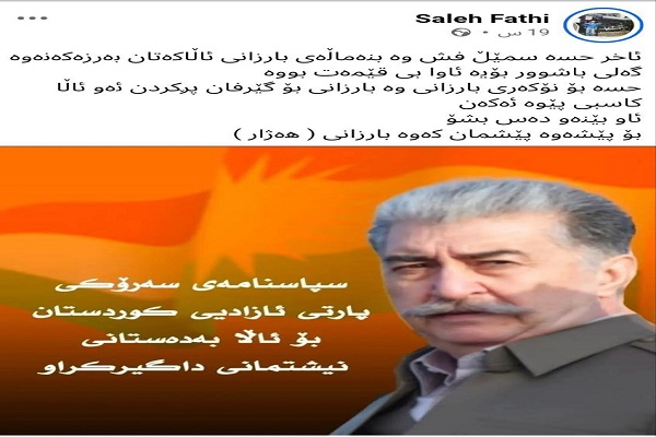 به گزارش آکام نیوز، صالح فتحی عضو قدیمی کومله در واکنش به برگزاری مراسم روز پرچم کردستان در گروهک حسین یزدان پناه خطاب به مردم کردستان نوشت؛ حسین سیبیل کلفت، خانواده بارزانی پرچم شما را بالا می برند؟ مردم اقلیم کردستان برای همین اینقدر بی ارزش شده اند.