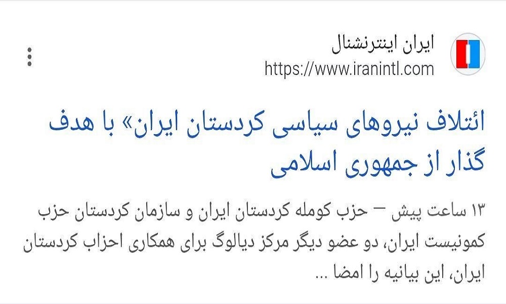 پایگاه خبری آکام نیوز مطلع شد، به دستور رضا پهلوی و عبدالله مهتدی، خبر ائتلاف ۵ گروه کُردی از خروجی وب‌سایت ایران اینترنشنال حذف شده است.