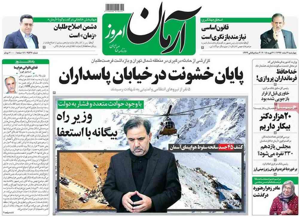 صفحه اول روزنامه ها 2 اسفند 96