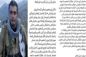 بعد از ۱۵ سال عضویت در کومله انقلابی زحمتکشان کردستان ایران و پس از حادثه دلخراش قتل دو پیشمرگ کومله که قربانی اشتباهات رهبری و تشکیلاتی و قدرت پرستی شدند، استعفای خود را از عضویت در کومله انقلابی اعلام داشته و خطاب به افکار عمومی اعلام می کنم؛ بعنوان پیشمرگ و فردی که سالهاست در کومله فعالیت دارم از همه مردم تهی دست کومله و خانواده این دو پیشمرگ عذرخواهی می کنم.