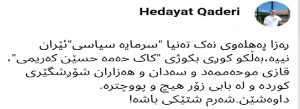 قادری در پایان خطاب به عمر ایلخانی زاده و عبدالله مهتدی نوشت؛ “خجالت بکشید، حیا کنید، شرم هم چیز خوبی است”.