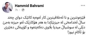 زشت ترین و غیراخلاقی ترین کار این است که بعد از سالها پیشمرگی و عضویت در یک حزب(کومله) به هر دلیلی از این حزب جدا شوی، استعفانامه ات را در شبکه های مجازی منتشر کنی و یک کپی از آن را هم برای آکام نیوز ارسال کنی!