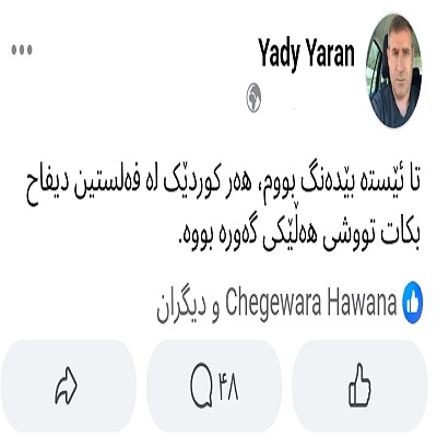 تا الان سکوت کردیم، هر کردی از فلسطین دفاع کند دچار اشتباه بزرگی شده است!