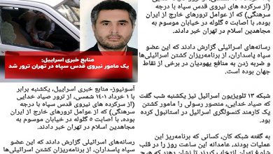 حمایت رسمی گروهک تروریستی کومله از ترورهای درون شهری رژیم صهیونیستی و ترور شهید صیاد خدایی+ سند